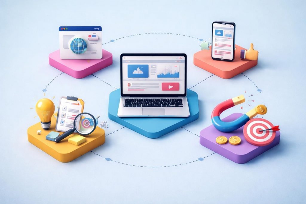 Bevor Deine Website online geht, brauchst Du eine eigene Domain und das passende Hosting. Wir übernehmen die Registrierung und wählen das beste Hosting-Paket aus. So ist Deine Seite schnell, stabil und rund um die Uhr erreichbar – auch bei vielen Besuchern gleichzeitig.